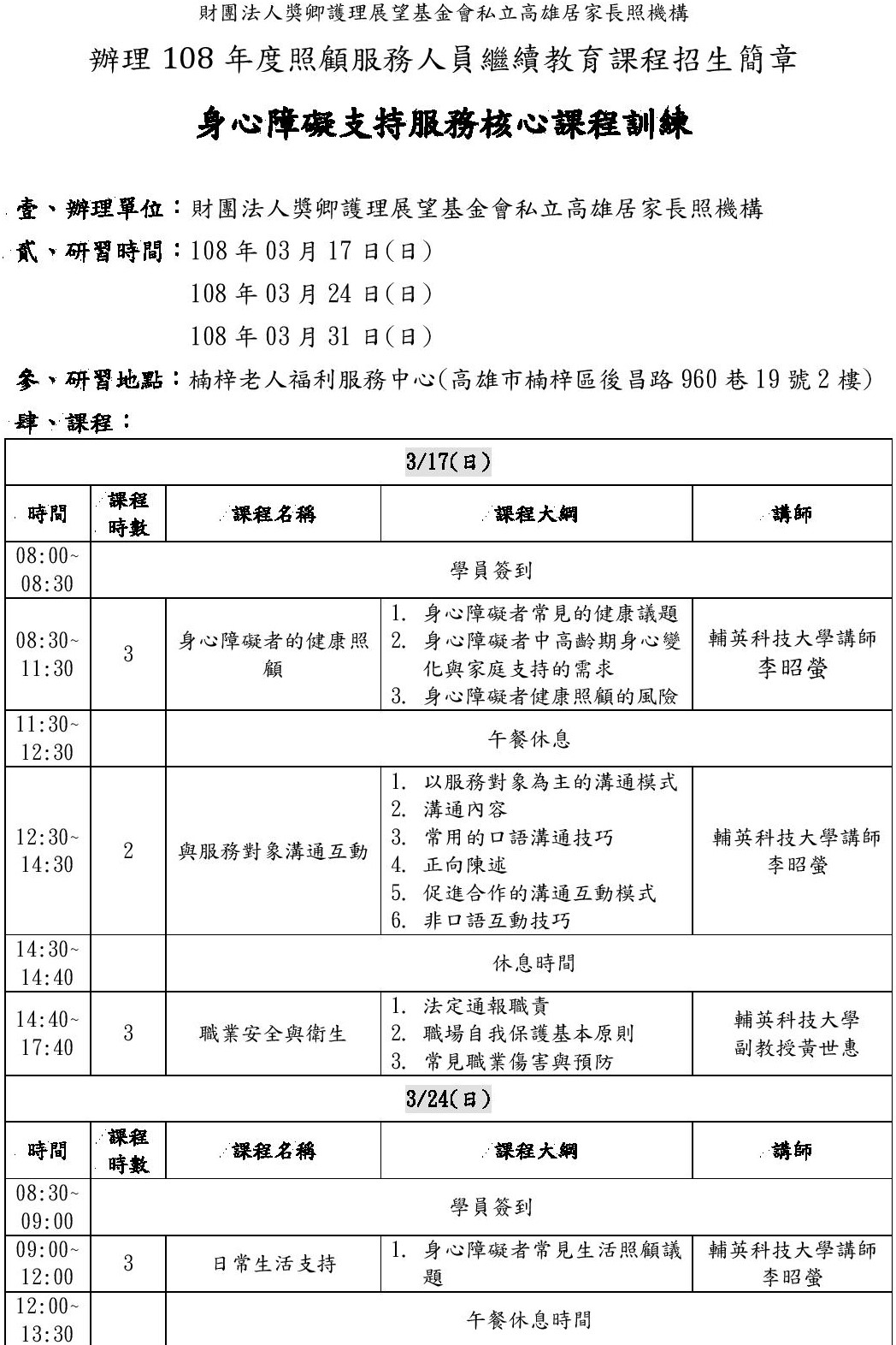 照顧服務人員繼續教育課程--身心障礙支持服務核心課程訓練