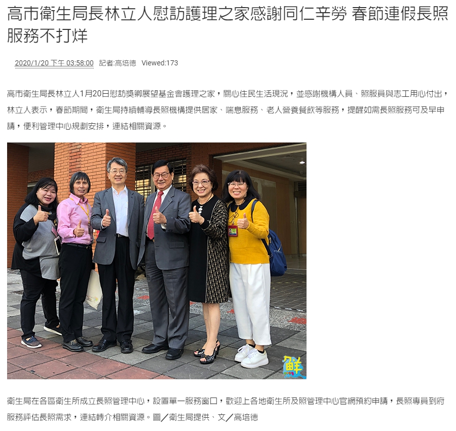 高市衛生局長林立人慰訪護理之家感謝同仁辛勞 春節連假長照服務不打烊