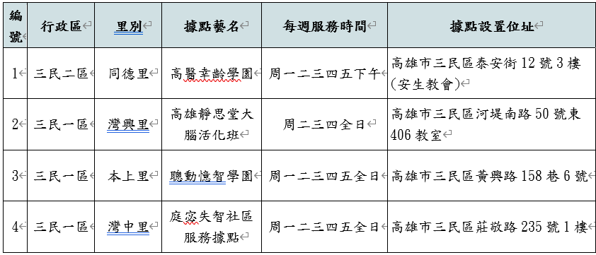 113年高雄市失智社區服務據點
