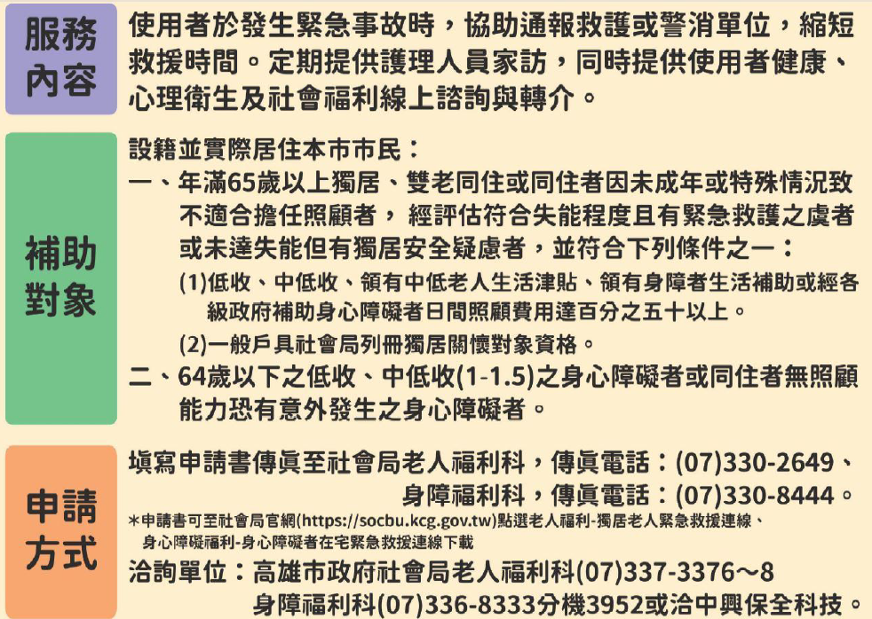 高雄市獨居老人及身心障礙者在宅緊急救援連線服務