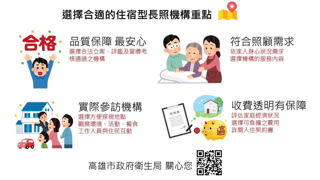 高雄市老年人口持續成長,截至113年6月底高雄市人口數為2,734,858人,其中老年人口數533,533人(比例19.51%),預估失能人口數112,001人,面對多元長期照顧需求,政府除了提供居家式照顧服務、日間照顧服務、家庭托顧服務及據點服務外,對於有高密度照顧需求者,可以選擇住宿型長照機構。