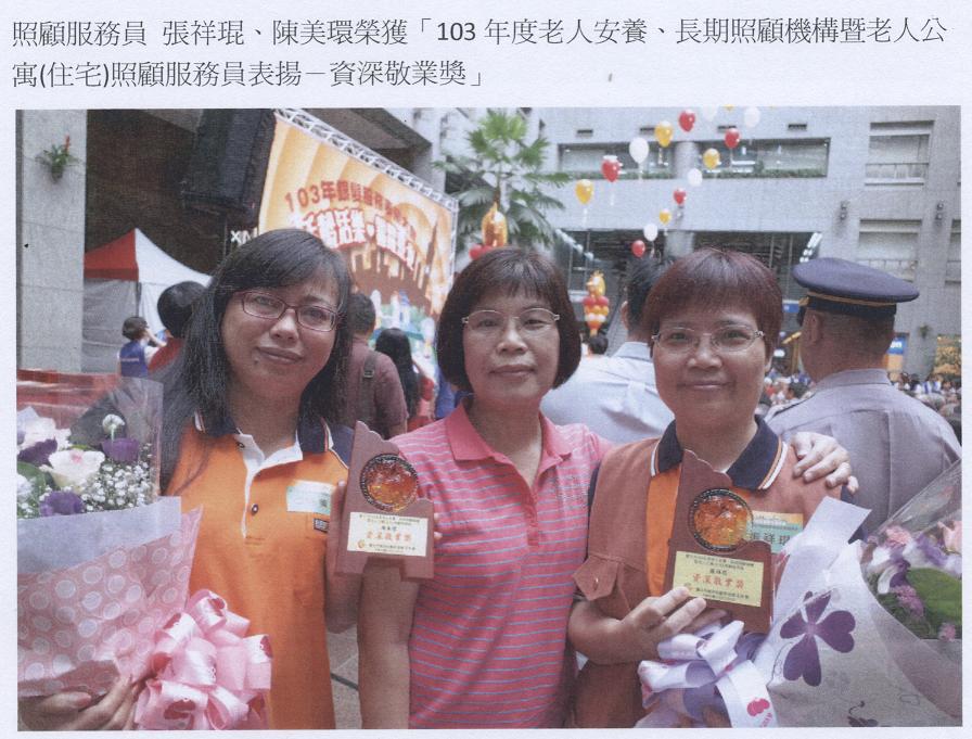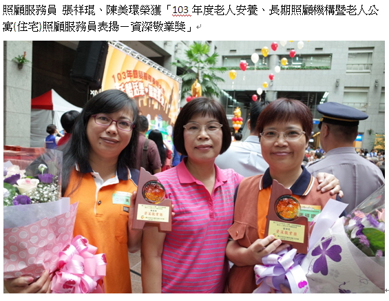 103年度老人安養,長期照顧機構暨老人公寓(住宅)照顧服務員表揚