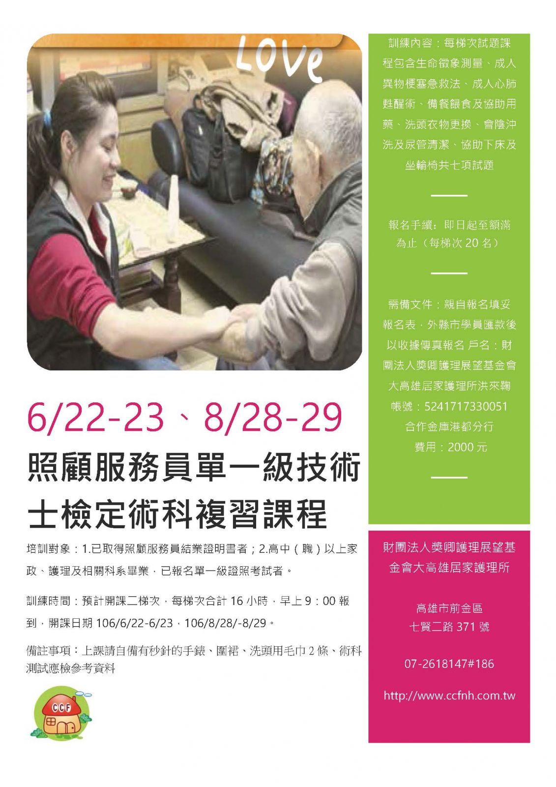照顧服務員單一級技術士檢定術科複習課程招生簡章
