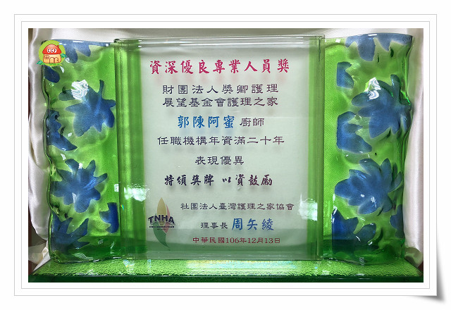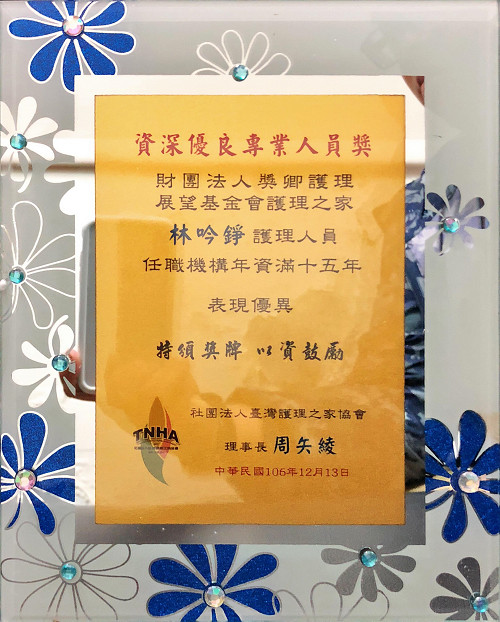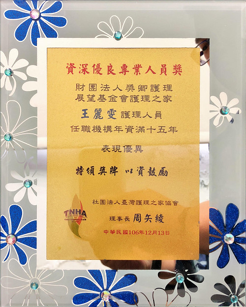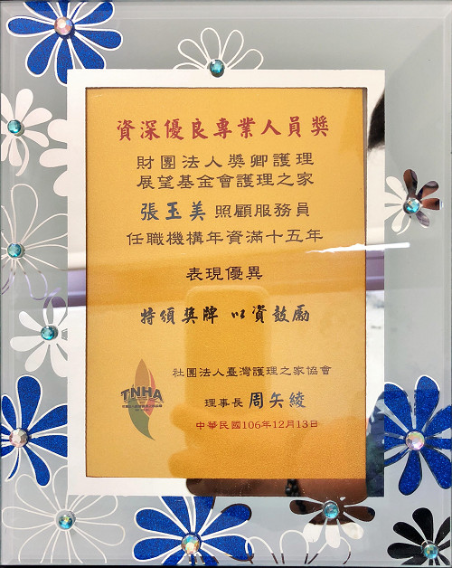 榮獲社團法人護理之家協會106年度服務滿15年資深人員獎
